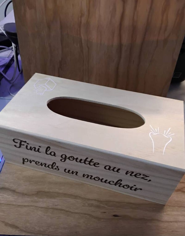 Boite à mouchoir rectanguaire en bois.